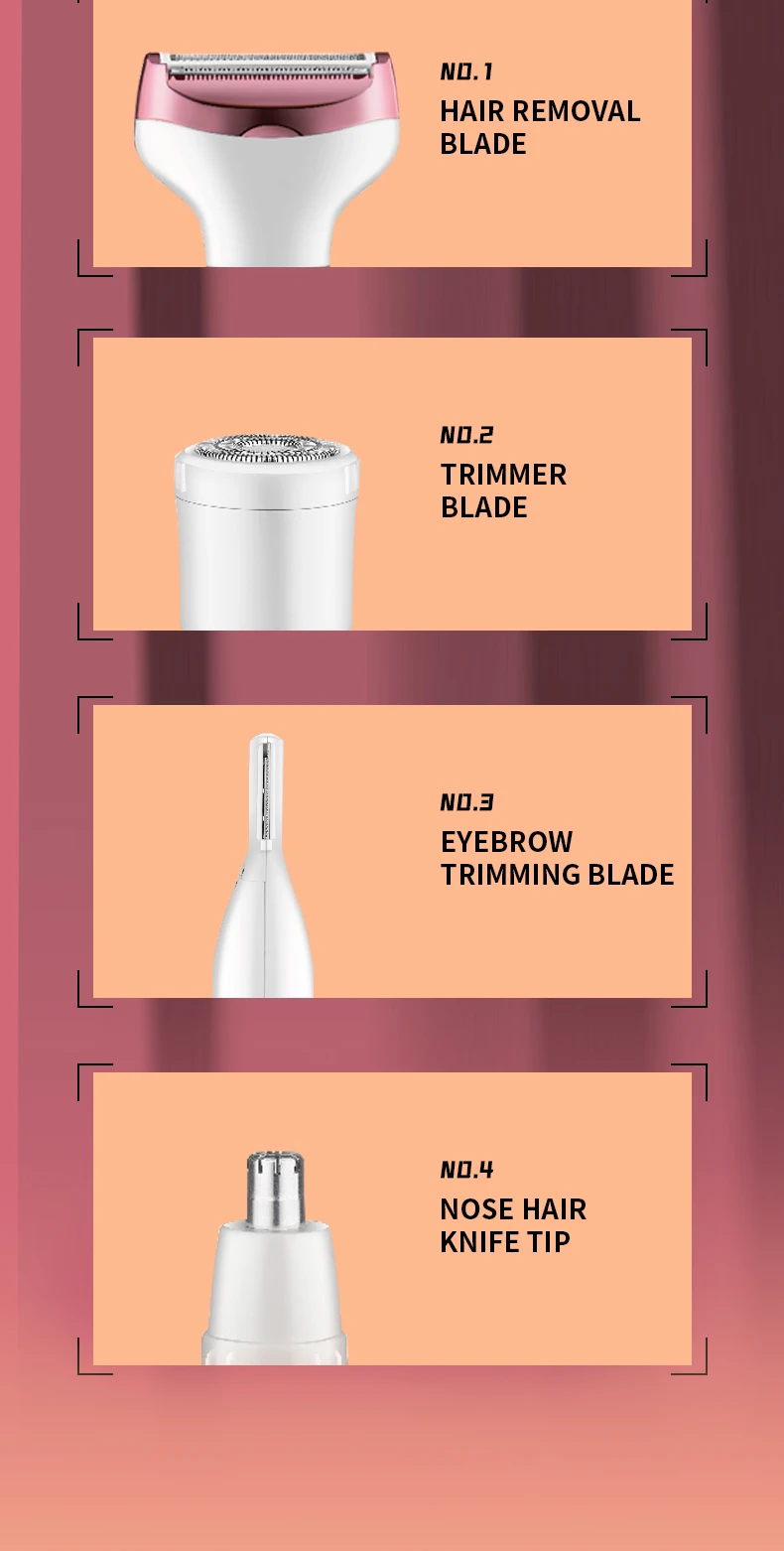 الرئيسية/ELECTRO WORLD/4-en-1 Rasoir Électrique Rechargeable pour Femmes, Épilateur Portable avec Chargement USB